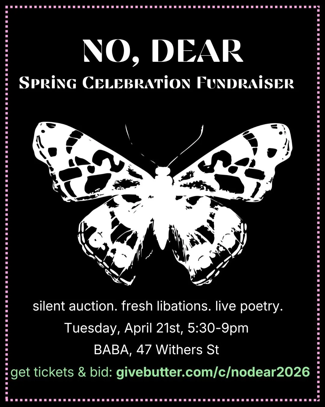 April 21: Spring Celebration & Fundraiser at Baba on Withers! Get your tickets & bid in the silent auction! Join us for hors d’oeuvres, good company, a new merch launch, and readings by Tangie Mitchell, Emily Skillings, Cat Wei, Ahmed Zaid, and by Supa Dupa Fresh's Mahogany L. Browne, Adam Falkner, Rico Frederick, Jive Poetic, and Jon Sands!